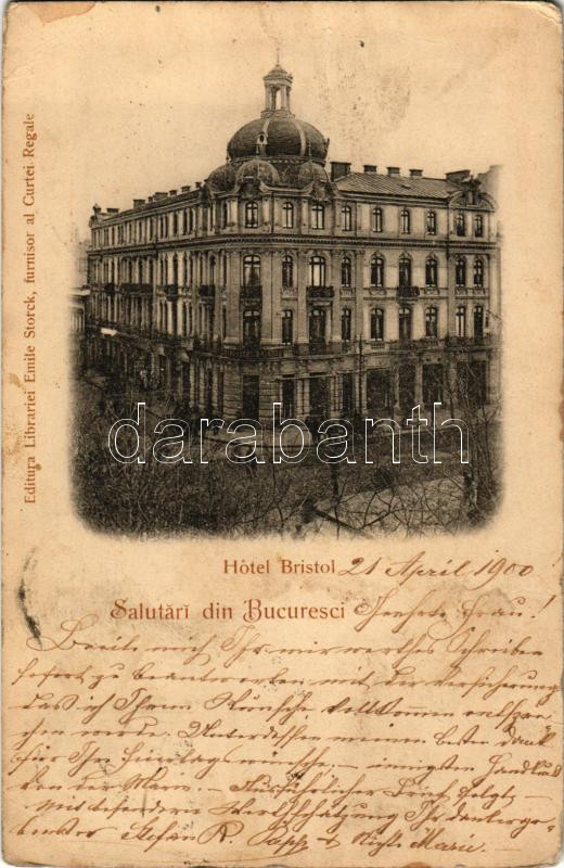 1900 Bucharest, Bukarest, Bucuresti, Bucuresci; Hotel Bristol (fl) https://www.darabanth.com/hu/506-Gyorsarveres/506.0/Kepeslapok/Romania~157/1900-Bucharest-Bukarest-Bucuresti-Bucuresci-Hotel-Bristol-fl~II3427463