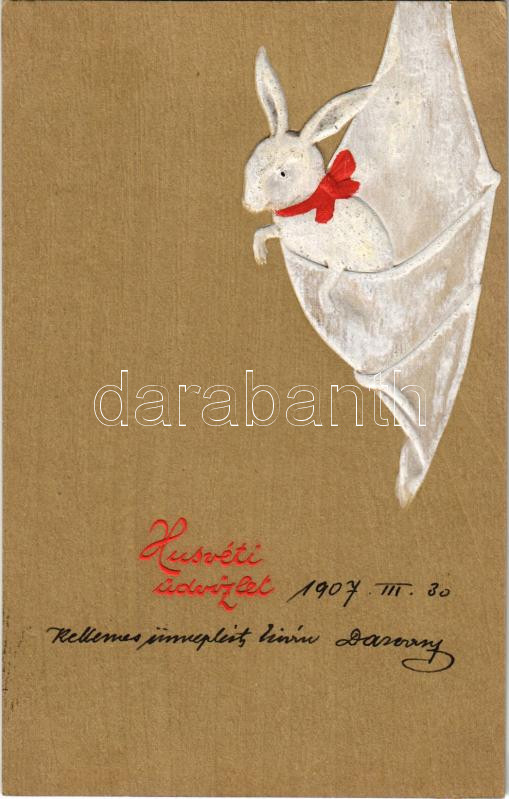 1907 Húsvéti üdvözlet / Easter greetings with rabbit. Emb. (ragasztóny... https://www.darabanth.com/hu/506-Gyorsarveres/506.0/Kepeslapok/Udvozlolapok-Unnepek~202/1907-Husveti-udvozlet-Easter-greetings-with-rabbit-Emb-ragasztonyom-glue-marks~II3096348
