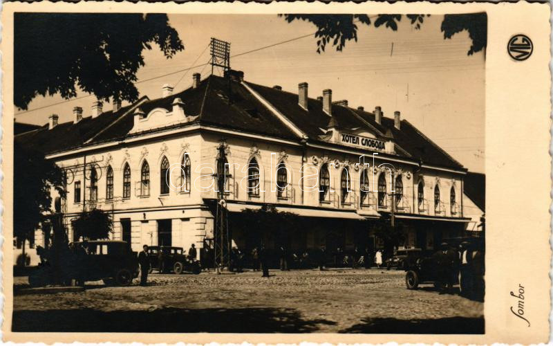 1937 Zombor, Sombor; Vadászkürt szálloda, autók / hotel, automobiles. ... https://www.darabanth.com/hu/506-Gyorsarveres/506.0/Kepeslapok/Vajdasag~116/1937-Zombor-Sombor-Vadaszkurt-szalloda-autok-hotel-automobiles-photo~II3288992