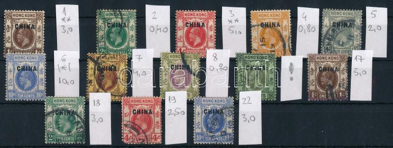 Leírás: Brit gyarmatok - Kína 1902-1922 13 klf bélyeg
