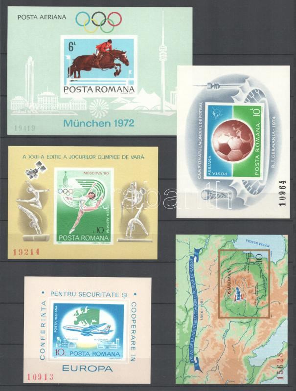 Leírás: Románia 1972-1980 5 db vágott blokk berakólapon