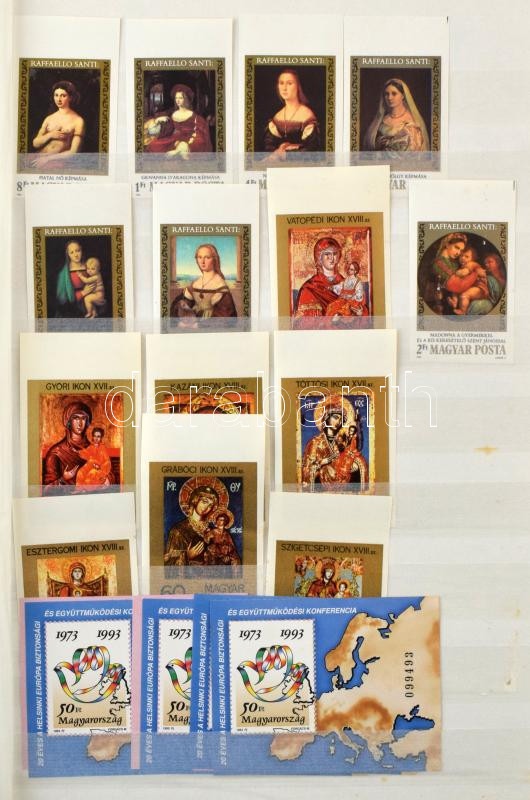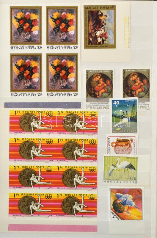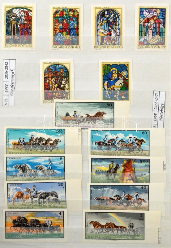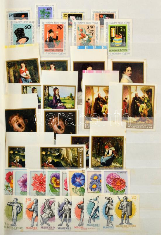 Modern magyar fogazott és vágott kiadások rengeteg sorral, kevés bélyegzettel 30 lapos A/4 berakóban, sok bélyeg betapadt, rozsdás. Nagyon magas katalógus érték, a bélyegek komoly része kifogástalan, de a többiek mentése sok munkát igényel. Érdemes megnézni és számolni!!!