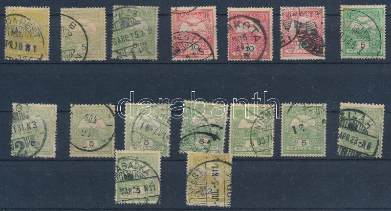 Leírás: 1904-1906 16 db Turul bélyeg fordított vízjellel