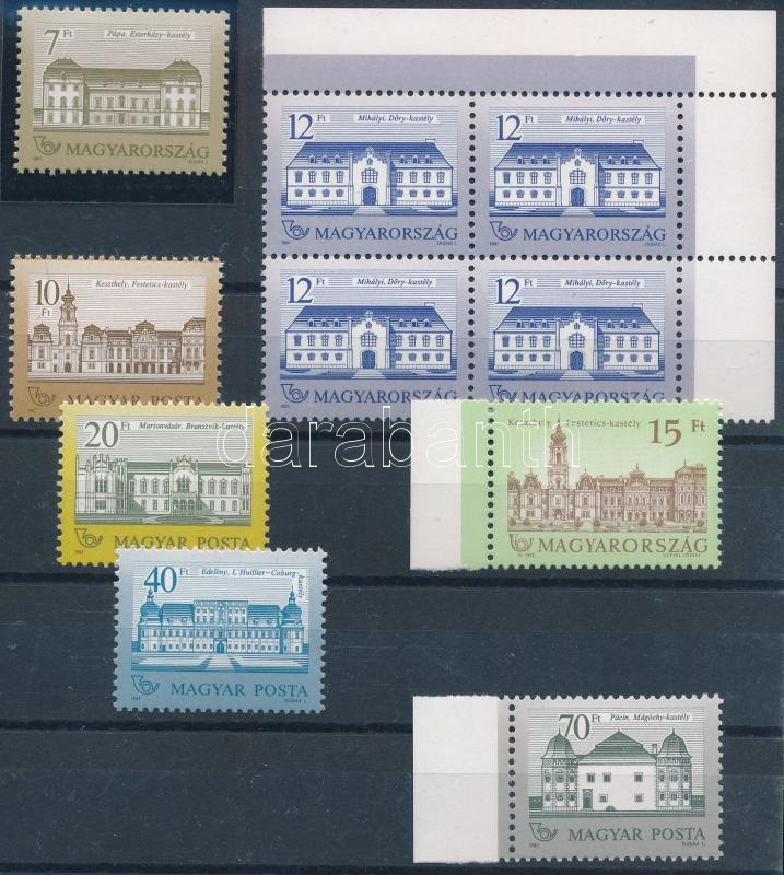Leírás: 1987-1992 Kastélyok 10 db bélyeg (7 klf érték) sihl papíron, 12 : 11 1/2 fogazással (37.700)
