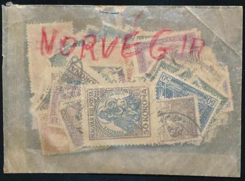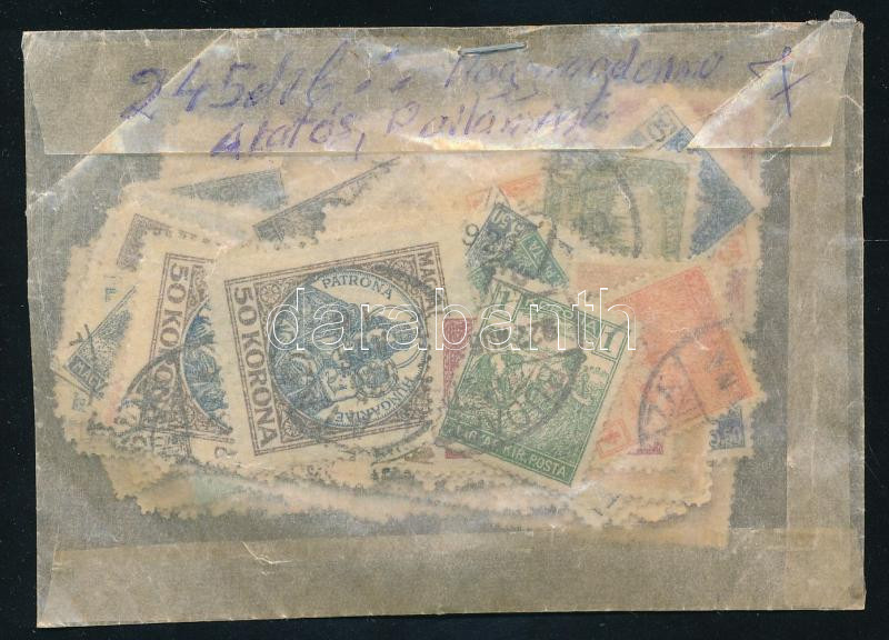 Leírás: 245 db főleg Arató-Parlament és néhány Nagy Madonna bélyeg mind hármaslyukasztással, kis zacskóban ömlesztve
