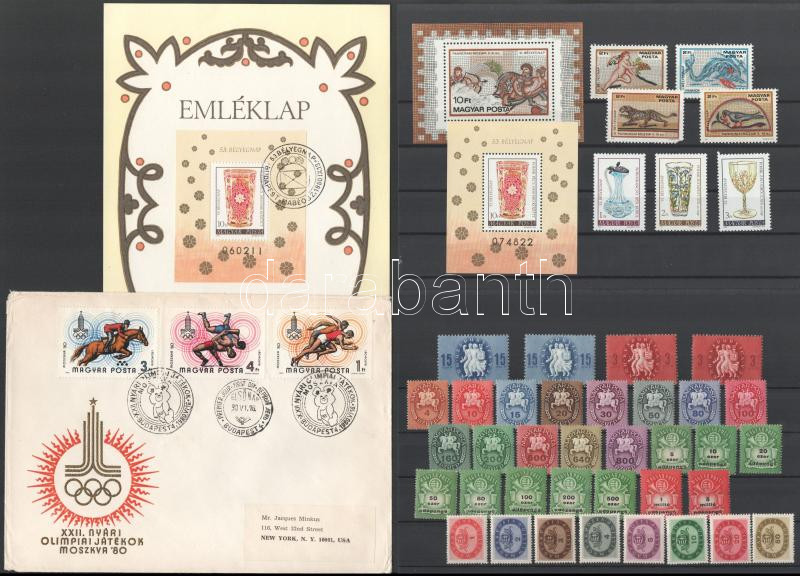 Leírás: Kis magyar tétel, benne sorok, 2 db blokk, emléklapok, küldemények