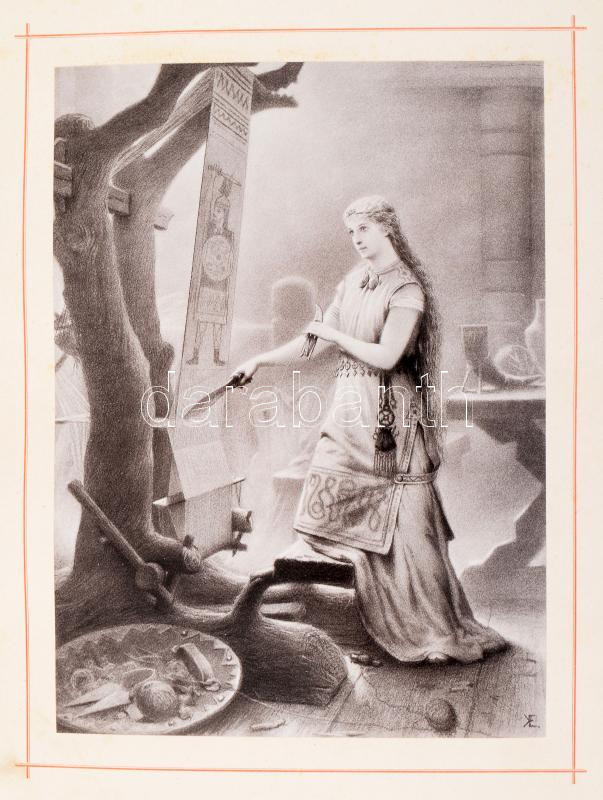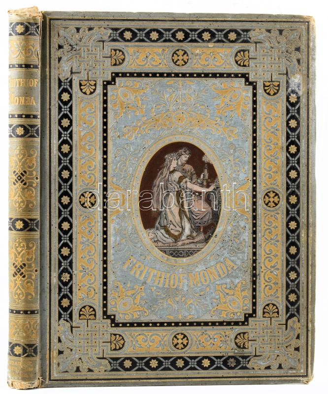 [Tegnér, Esaias]: A Frithiof-monda Tegnér Ezsaiástól. Svéd eredetiből ford.: Győry Vilmos. Ekwall Kanut tizenkét fénynyomatu képével, szerző arczképével és számos szövegképpel. Bp., [1891], Athenaeum, 1 (címkép) t.+ 123+(1) p.+ 12 t. Szövegközti és egészoldalas, fekete-fehér illusztrációkkal. Kiadói dekoratív, aranyozott, festett egészvászon-kötés, Gottermayer-kötés, kissé viseltes, foltos borítóval, sérült gerinccel, helyenként foltos lapokkal.