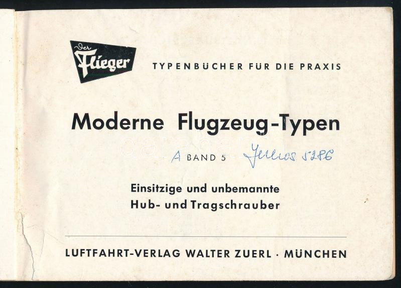 Moderne Flugzeug-Typen Band 5. Einsitzige und unbemannte Hub- und Tragschrauber. München, é.n., Luftfahrt-Verlag Walter Zuerl, 111+(1) p. Fekete-fehér képekkel illusztrálva. Német nyelven. Kiadói papÃrkötés, viseltes borÃtóval, helyenként kis lapszéli foltokkal.