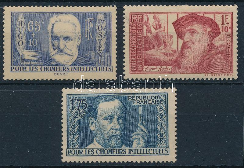 1938 A munkanélküli értelmiségiekért sor 3 utolsó értéke Mi 419-421 https://www.darabanth.com/hu/506-Gyorsarveres/506.0/Kulfoldi-filatelia-es-postatortenet/Franciaorszag~370/1938-A-munkanelkuli-ertelmisegiekert-sor-3-utolso-erteke-Mi-419-421~II3426392