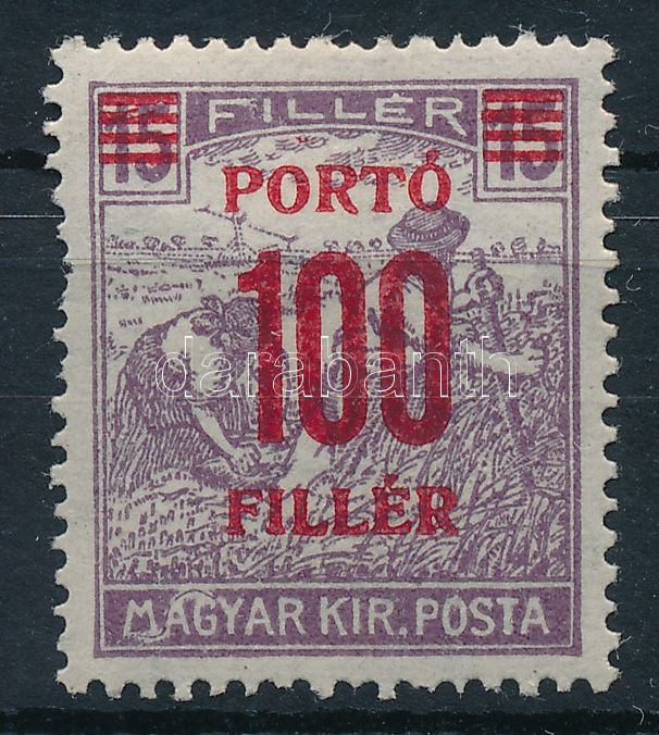 1921 Kisegítő portó 100f/15f alul lemezhibával https://www.darabanth.com/hu/506-Gyorsarveres/506.0/Magyar-filatelia-es-postatortenet/A-Korona-inflacio-idoszaka~46/1921-Kisegito-porto-100f15f-alul-lemezhibaval~II3427398
