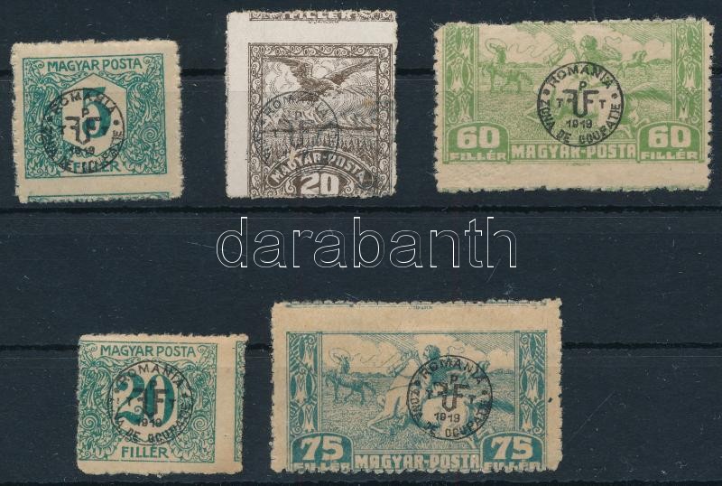 Leírás: Debrecen II. 1920 5 klf bélyeg eltolódott fogazással, Bodor vizsgálójellel