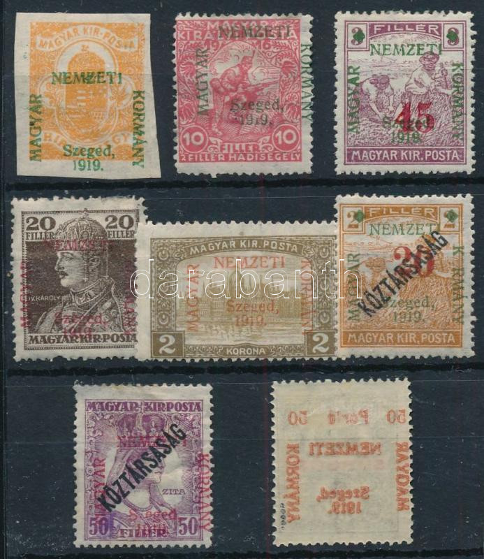 Leírás: Szeged 1919 8 db bélyeg Bodor vizsgálójellel
