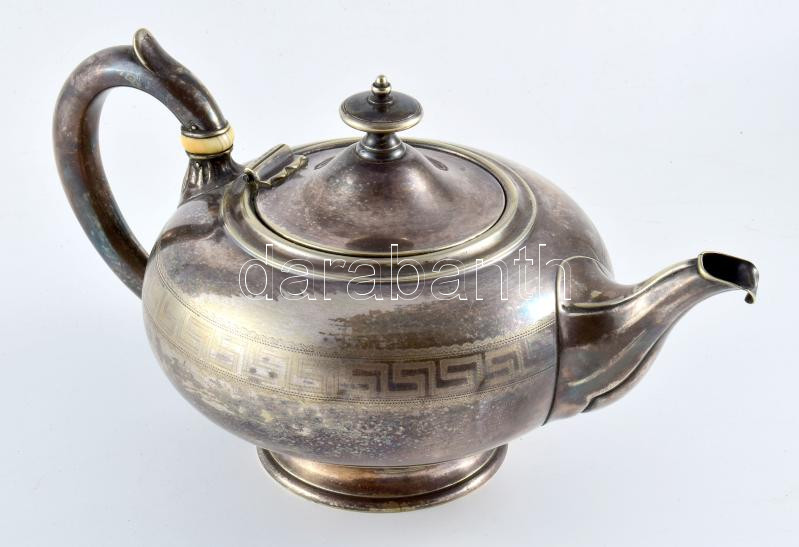 Leírás: Lackner ezüstözött teás kanna, jelzett, sérült, 28x14 cm