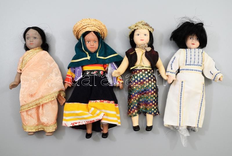 Leírás: 4 darab klf népviseletbe öltöztetett porcelán baba, m: 24 cm
