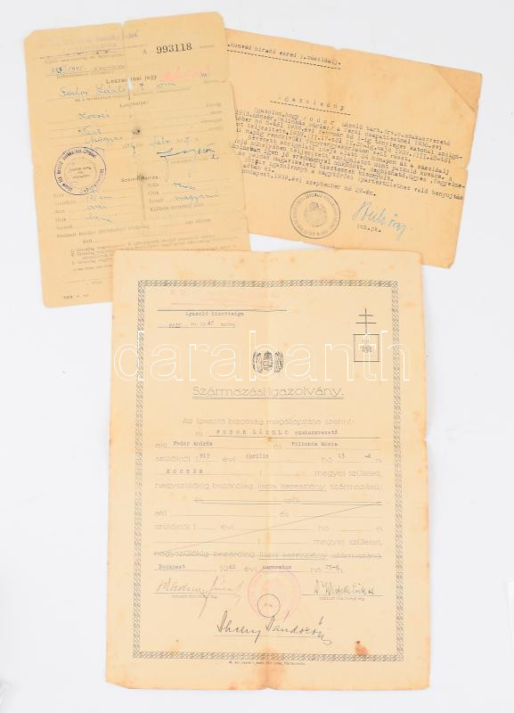 Leírás: 1939-1942 3 db magyar katona részére kiadott igazolás