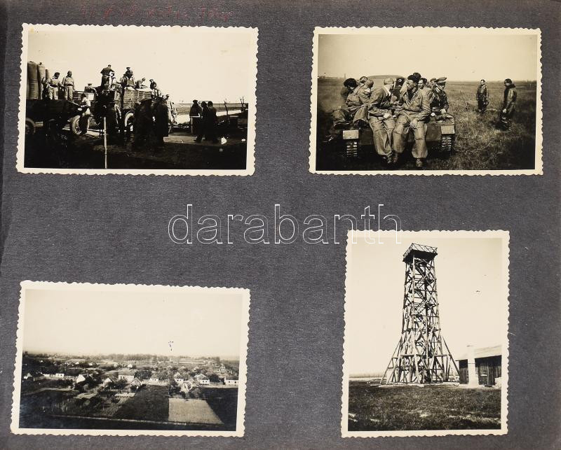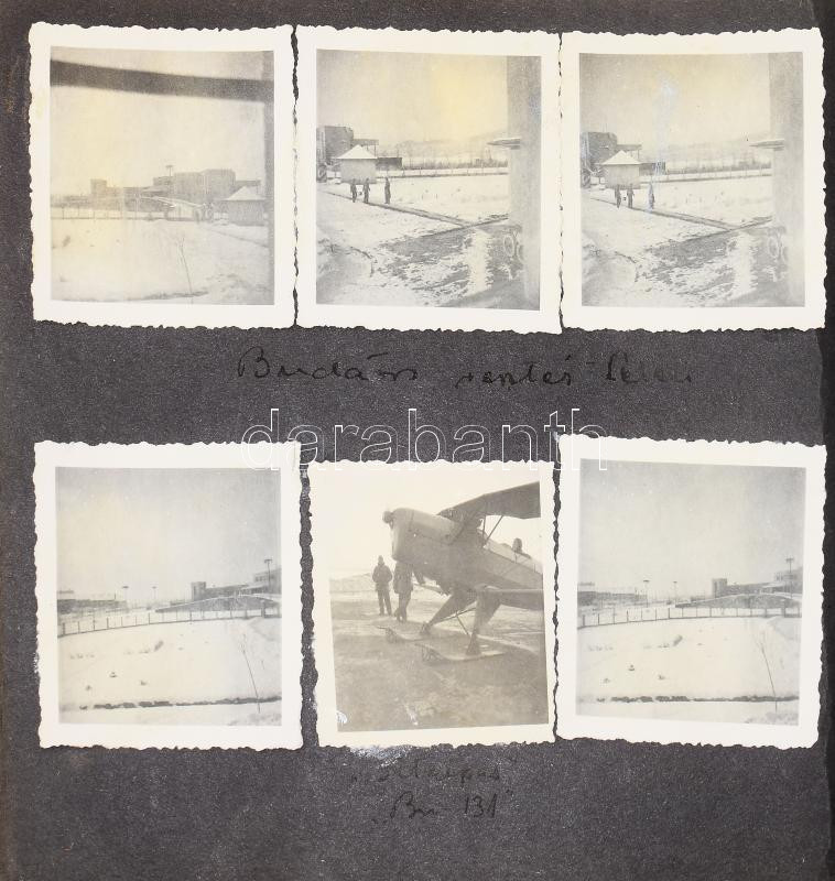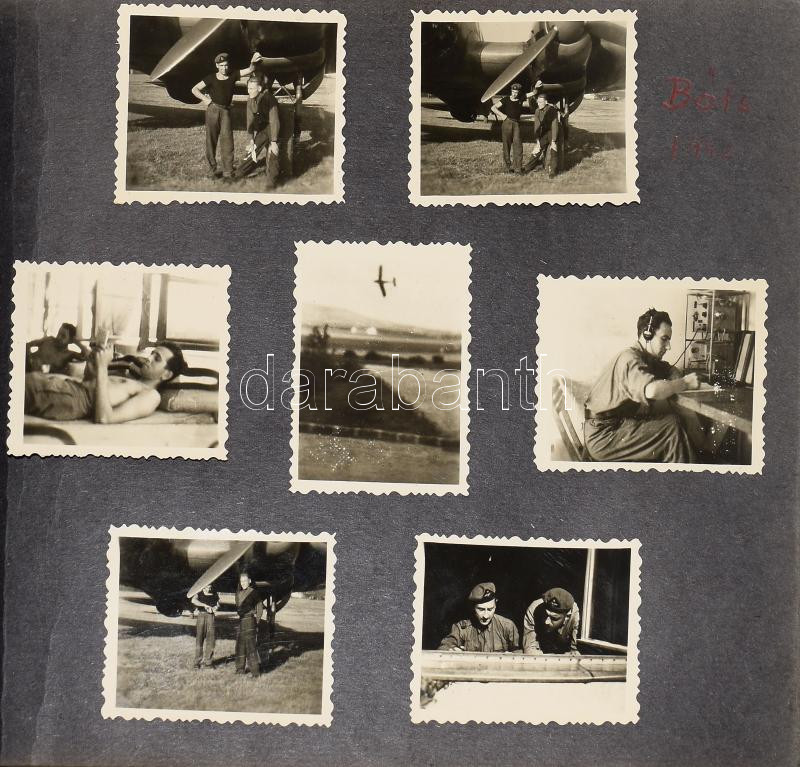 1942-43 II. világháborús pilóta felvételei, nagyrészt magyarországi repterek, kiképzőközpontok környékén, Budaörsi reptér, Tapolca, hozzá néhány budapesti és egyéb városrészlet, de nagyrészt katonai járművek portrék, repülőgépek, összesen 150 fénykép albumban, feliratozva, dátumozva.
