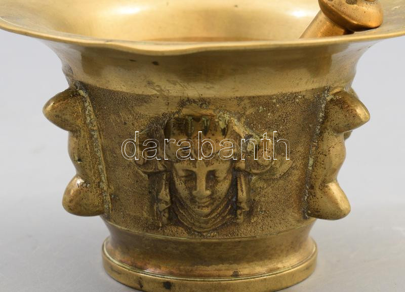 Régi bronz mozsár, oldalán női arc díszítéssel, m: 7 cm, törő h: 17 cm https://www.darabanth.com/hu/506-Gyorsarveres/506.0/Mutargy-papirregiseg-egyeb/Mutargyak-antikvitas~634/Regi-bronz-mozsar-oldalan-noi-arc-diszitessel-m-7-cm-toro-h-17-cm~II3405456