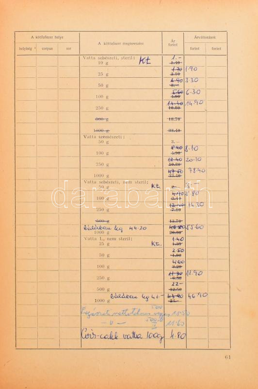 1955 Hivatalos gyógyszerárszabás. Bp.., 1955 Művelt nép. 103p. tollas ... https://www.darabanth.com/hu/506-Gyorsarveres/506.0/Mutargy-papirregiseg-egyeb/Nyomtatvanyok~77/1955-Hivatalos-gyogyszerarszabas-Bp-1955-Muvelt-nep-103p-tollas-bejegyzesekkel-egeszva~II3416266