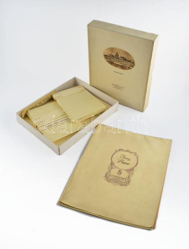 Leírás: Vitéz Szénásy Béla 17 darab ivory levélpapír és 27 darab levélboríték, saját dobozban.