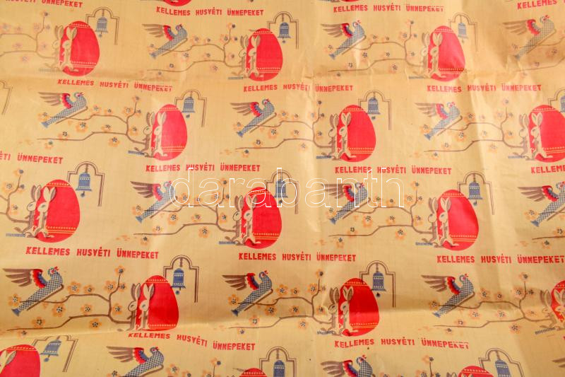 Leírás: cca 1930 Kellemes húsvéti ünnepeket feliratos csomagoló papír csomagoló papír; jelzés nélkül; 1 ív, 70×90 cm