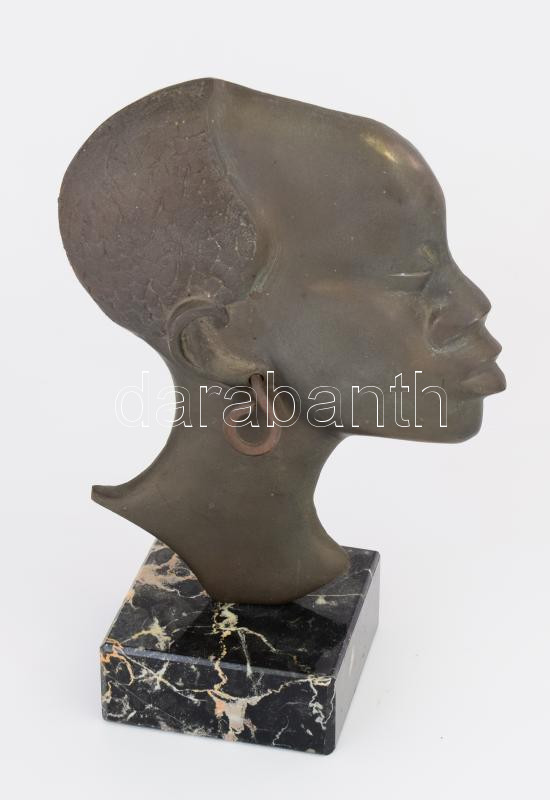 Leírás: Hagenauer modorában osztrák bronz afrikai fej szobor, jelzés nélkül, talapzaton, m: 27 cm