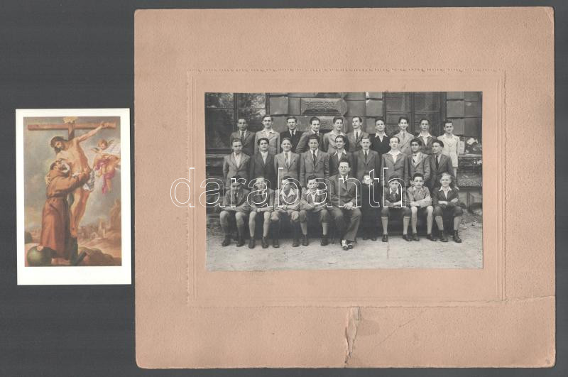 Leírás: Páldeák Szabolcs szerzetes (1926-2014) iskolai tablófotója, feliratozva, + pappászentelési emlék az 50. évfordulóra