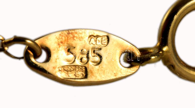 Arany (Au) nyaklánc, édesvízi gyöngyökkel, 1,4K, jelzett, számlával, b... https://www.darabanth.com/hu/506-Gyorsarveres/506.0/Nemesfem-disztargyak-ekszerek-dragakovek/Nemesfem-disztargyak-ekszerek-dragakovek~78/Arany-Au-nyaklanc-edesvizi-gyongyokkel-1-4K-jelzett-szamlaval-brutto-1-4g~II3426385