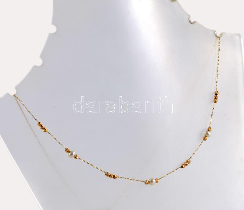 Leírás: Arany (Au) nyaklánc, édesvízi gyöngyökkel, 1,4K, jelzett, számlával, bruttó 1,4g