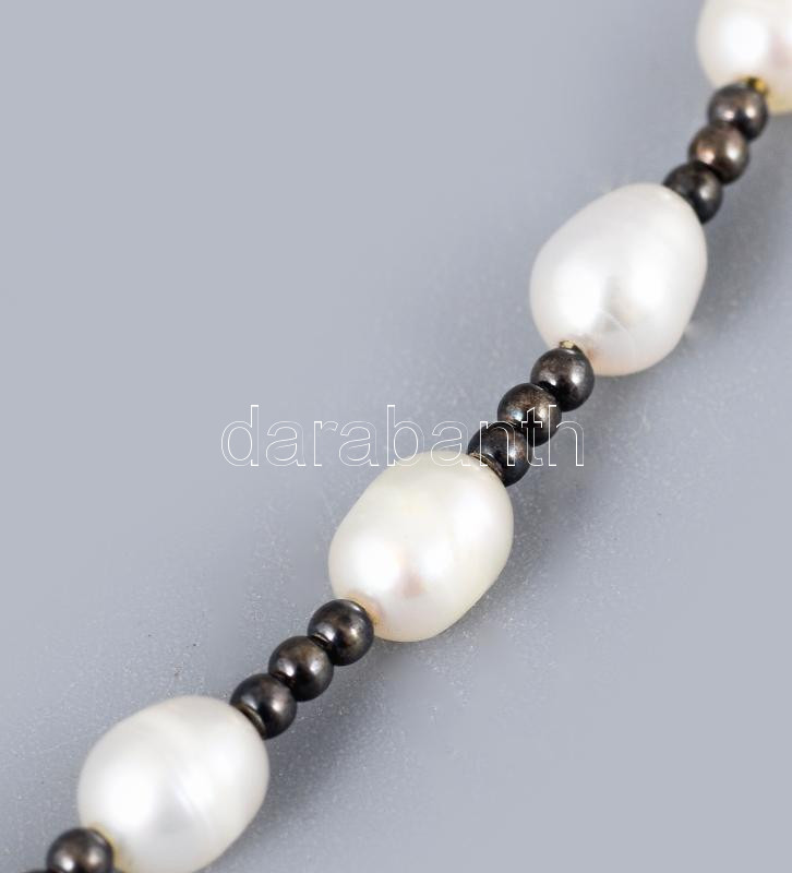 Leírás: Ezüst (Ag) karkötő édesvízi gyöngyökkel, jelzett, h: 17 cm, tokban