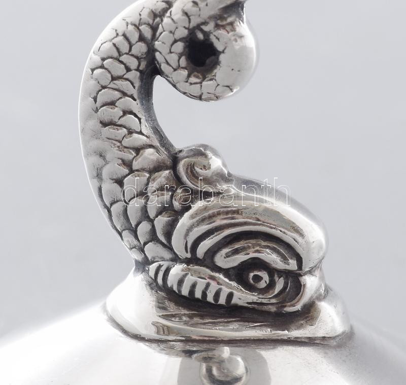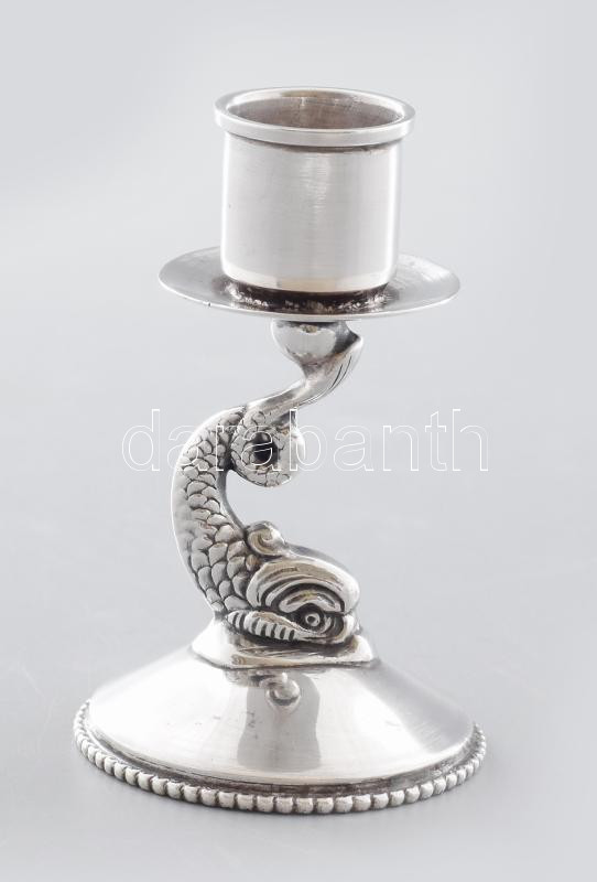 Leírás: Ezüst (Ag) koi hal alakkal díszített gyertyatartó, m: 8 cm, jelzett, nettó 37,7g