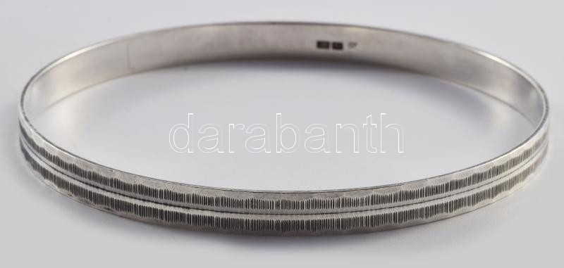 Ezüst (Ag) mintás karperec, jelzett, d: 6,5 cm, nettó: 12,3 g https://www.darabanth.com/hu/506-Gyorsarveres/506.0/Nemesfem-disztargyak-ekszerek-dragakovek/Nemesfem-disztargyak-ekszerek-dragakovek~78/Ezust-Ag-mintas-karperec-jelzett-d-6-5-cm-netto-12-3-g~II3427776