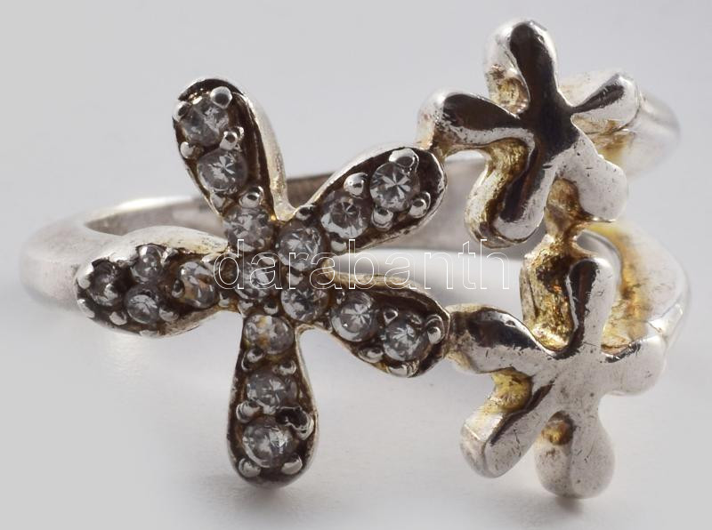 Leírás: Ezüst (Ag) sokköves virágmintás gyűrű, jelzett, méret: 52, bruttó: 4,6 g