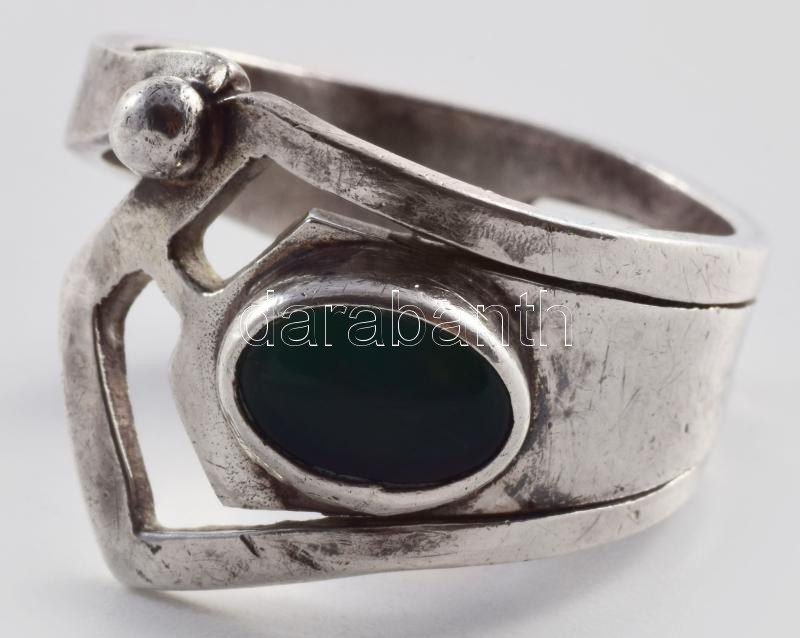 Ezüst (Ag) zöld köves modern gyűrű, jelzett, méret: 51, bruttó: 5,4 g https://www.darabanth.com/hu/506-Gyorsarveres/506.0/Nemesfem-disztargyak-ekszerek-dragakovek/Nemesfem-disztargyak-ekszerek-dragakovek~78/Ezust-Ag-zold-koves-modern-gyuru-jelzett-meret-51-brutto-5-4-g~II3428271