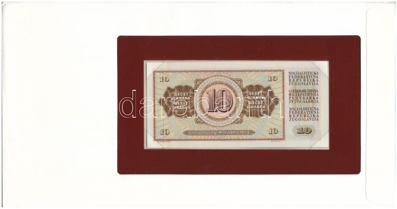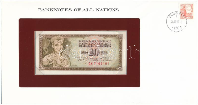 Yugoslavia 1968. 10 Dinara in "Banknotes of all Nations" banknote envelope with stamp and cancellation C:UNC