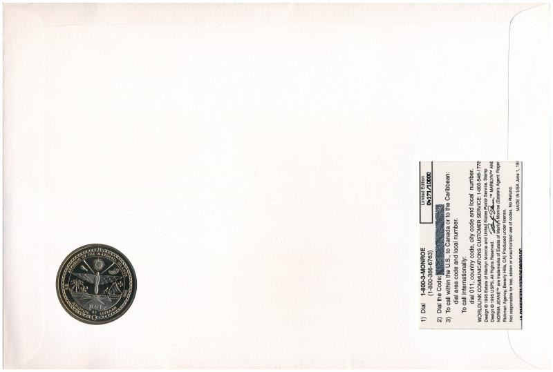 Marshall-szigetek 1995. 5D "Marilyn Monroe" érmés borítékban, első napi bélyegzéses bélyeggel, telefonkártyával, német tájékoztató lappal T:PP