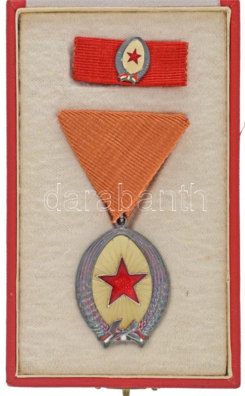 1964. "A Munka Érdemrend ezüst fokozata" ezüstözött, zománcozott bronz kitüntetés mellszalagon, miniatűrrel, eredeti tokban T:AU, patina, kifakult mellszalag