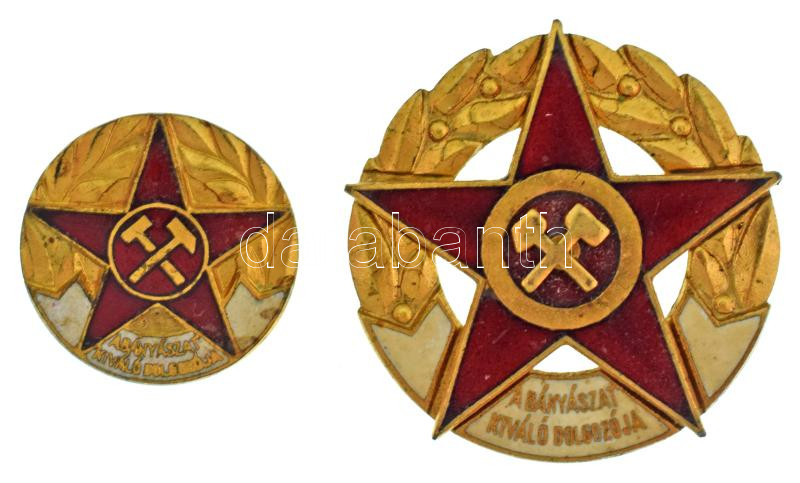 Leírás: DN(~1960) "A Bányászat Kiváló Dolgozója " aranyozott, műgyantás jelvény miniatűrrel (29mm ; 19mm) T:XF, a miniatűrön kis műgyanta hiba