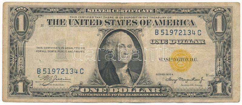 Amerikai Egyesült Államok 1935-1945 (1935A) 1$ "Silver Certificate" kisméretű, sárga pecsét, Észak-Afrikai katonai kiadás, "William Alexander Julian - Henry Morgenthau Jr.", " B51972134C" T:F