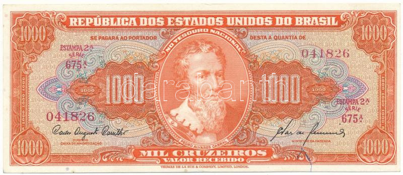 Brazil ND(19... https://www.darabanth.com/hu/506-Gyorsarveres/506.0/Numizmatika/Kulfoldi-bankjegyek~273/Brazilia-DN1960-1000C-675A-041826-TXF-VF3Cbr-3E-Brazil-ND1960-1000-Cruzeiros-675A-041826~II3427562