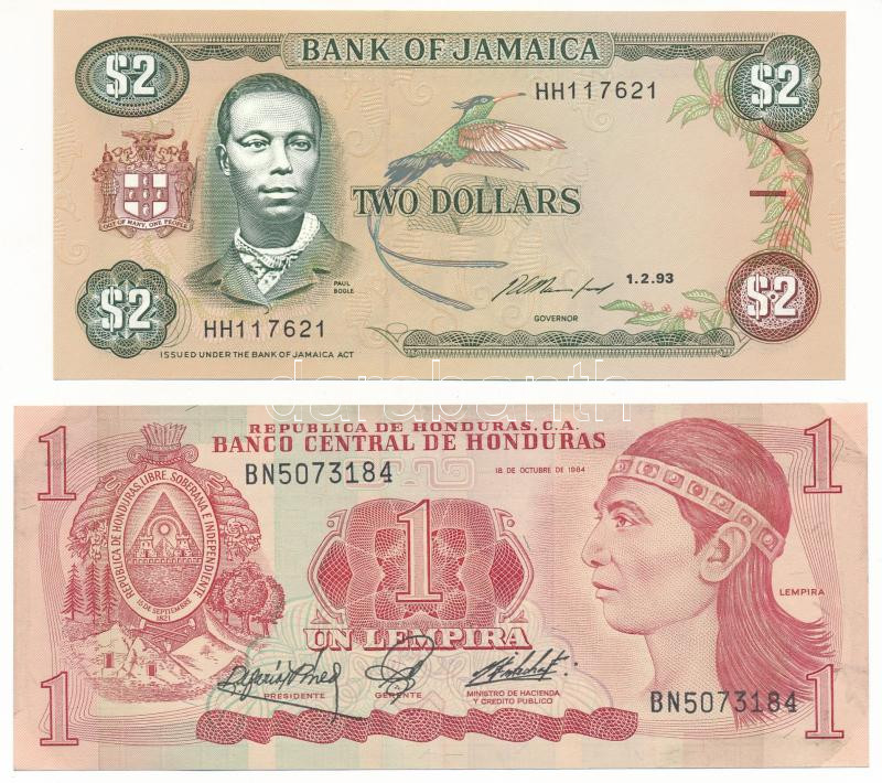 Honduras 1984. 1 Lempira + Jamaica 1993. 2 Dollars C:UNC,AU