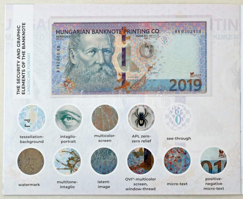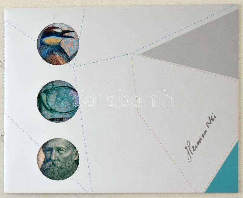 2019. "Herman Ottó" (2xklf) mintabankjegy pár tervezet. Eredeti, angol nyelvű tájékoztató füzetben. A bankjegyeket tervezte: Pálinkás György T:UNC