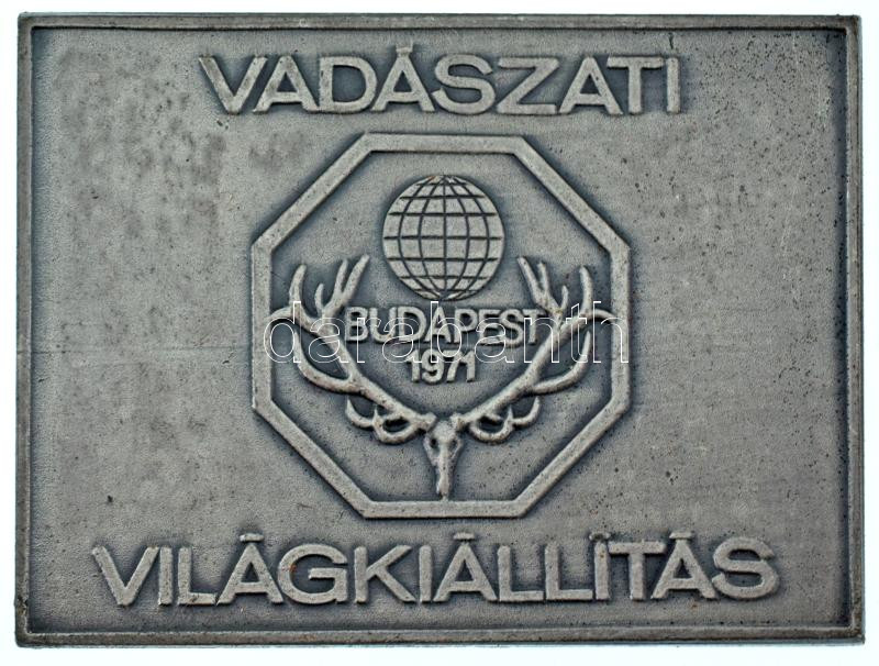 Leírás: 1971. "Vadászati Világkiállítás Budapest 1971 " kétoldalas, ezüstpatinázott bronz plakett fóliatokban (50x70mm) T:AU
