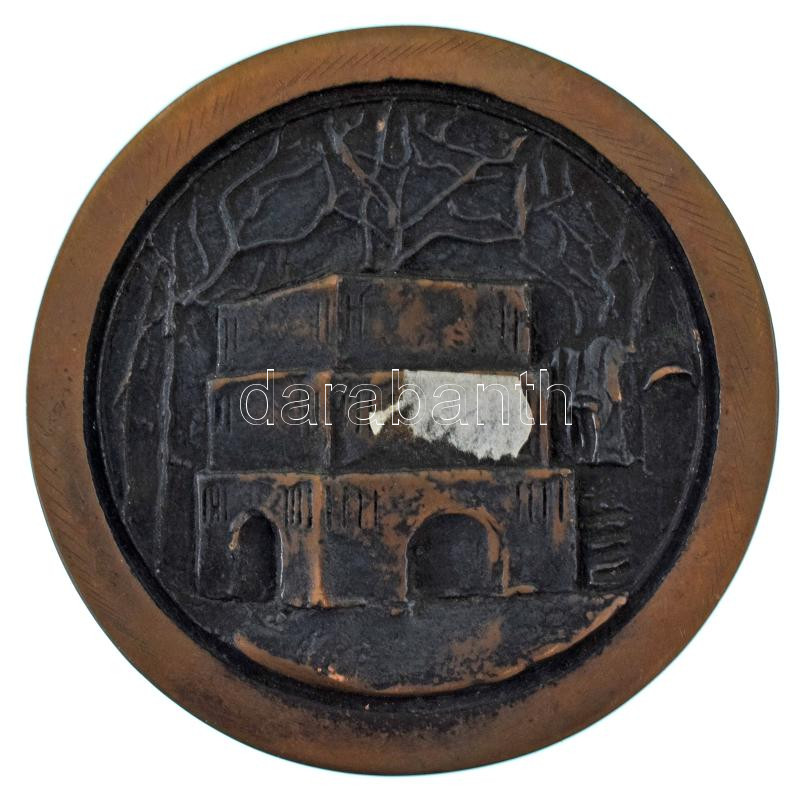 Leírás: 1976. "Hetvenöt éves a Vasgyári Kórház 1976 " kétoldalas, öntött bronz plakett (100mm) T:XF, patina, ragasztónyom a hátoldalán