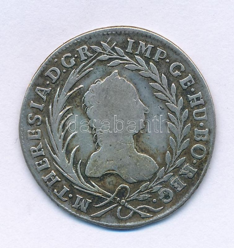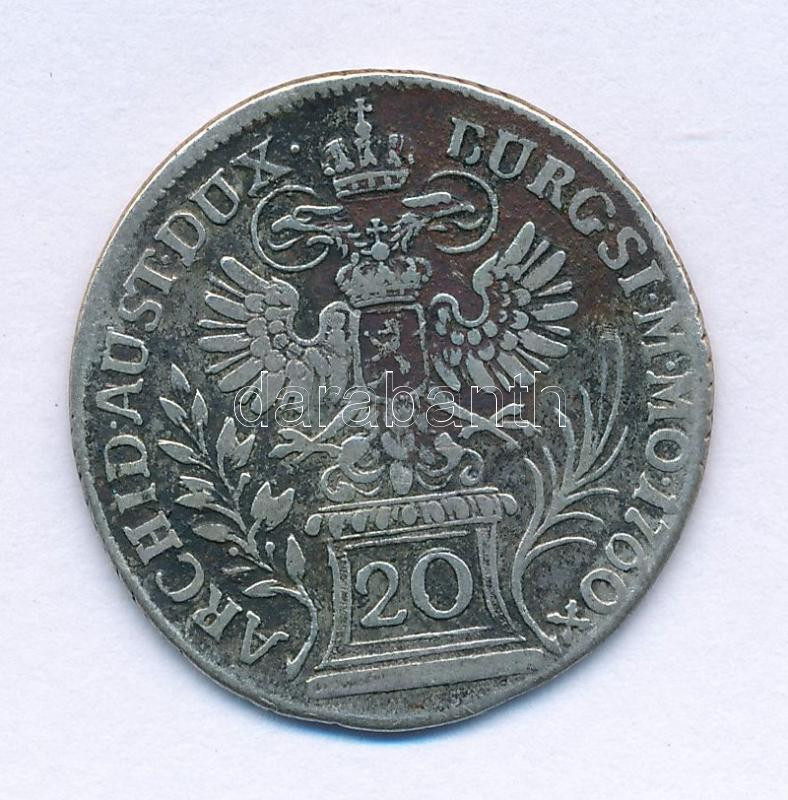 Leírás: Ausztria 1760. 20kr Ag "Mária Terézia" Bécs (6,48g) T:F, patina