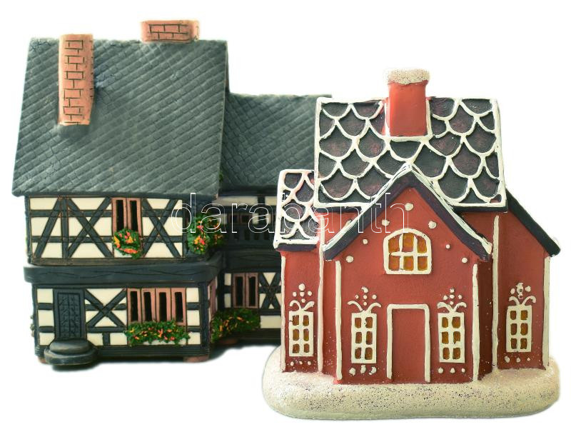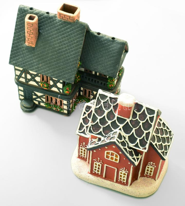 Leírás: 2 darab német kerámia ház asztaldísz, egyik jelzett, m: 17 cm alatt