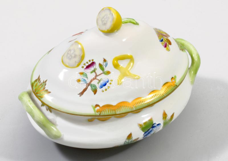 Herendi Viktória mintás fedeles edény, citromfogóval, jelzett, kézzel ... https://www.darabanth.com/hu/506-Gyorsarveres/506.0/Porcelan-keramia-uveg/Porcelan~632/Herendi-Viktoria-mintas-fedeles-edeny-citromfogoval-jelzett-kezzel-festett-hibatlan-13x10~II3430483