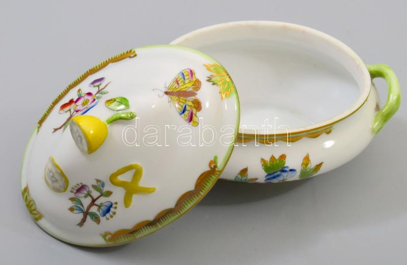 Leírás: Herendi Viktória mintás fedeles edény, citromfogóval, jelzett, kézzel festett, hibátlan, 13x10 cm