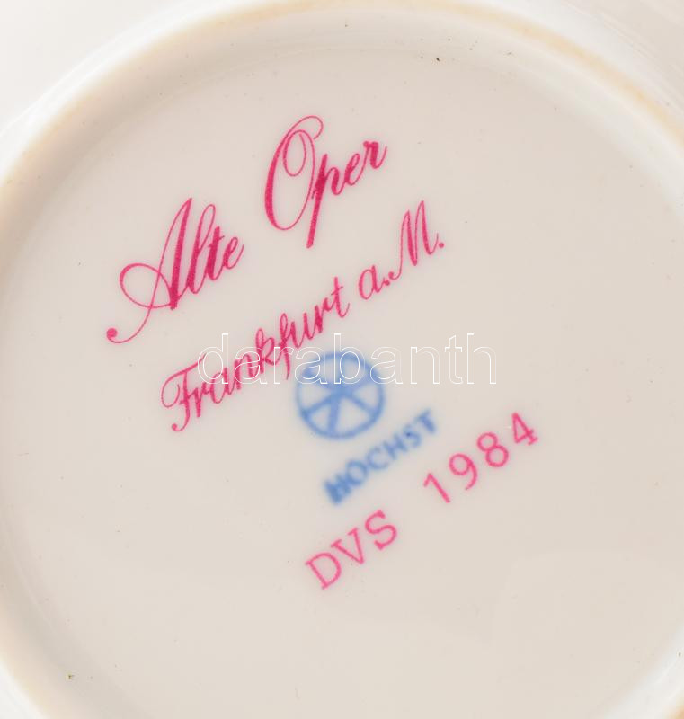 Leírás: Höchts dísztálka a Frankfurti Operaház képével, jelzett, hibátlan, d: 11 cm
