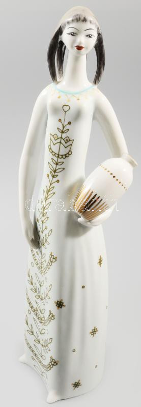 Leírás: Hollóházi Korsósnő. Terv.: J. Seregély Márt. Jelzett, hibátlan, m: 27,5 cm