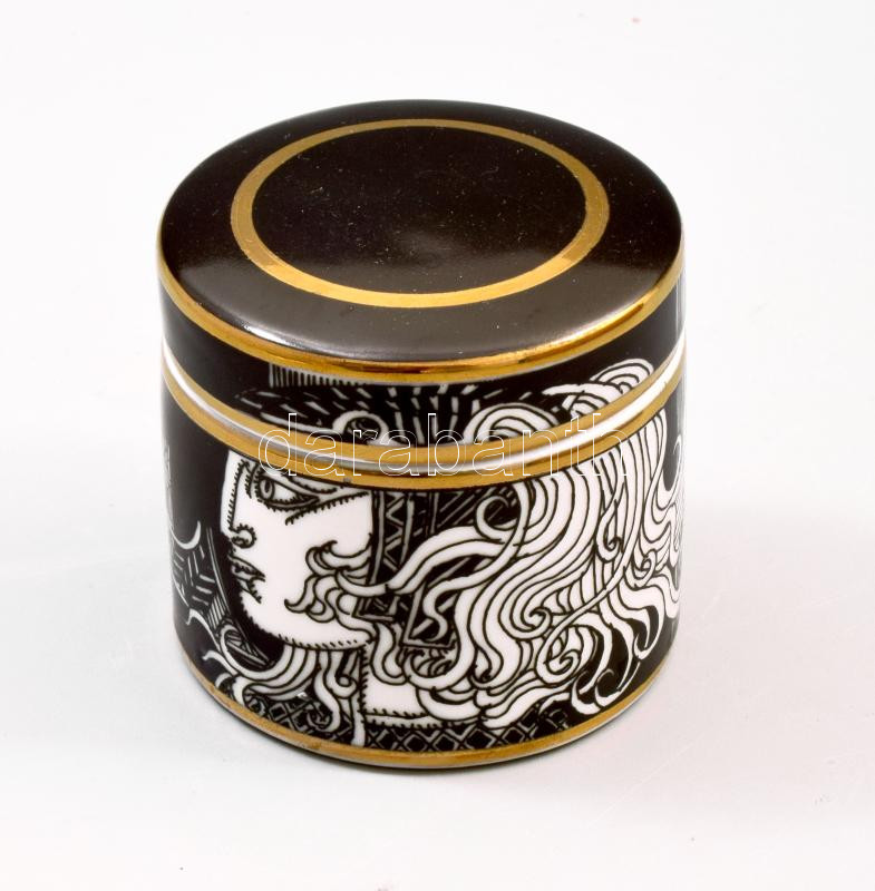 Hollóházi Szász Endre által tervezett porcelán tégely. Matricás, jelze... https://www.darabanth.com/hu/506-Gyorsarveres/506.0/Porcelan-keramia-uveg/Porcelan~632/Hollohazi-Szasz-Endre-altal-tervezett-porcelan-tegely-Matricas-jelzett-hibatlan-5x6-cm~II3432030